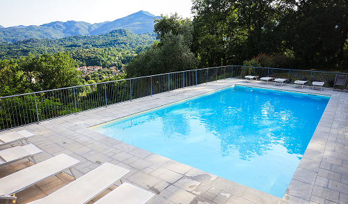 Piscina panoramica di acqua salata per bagni rinfrescanti nella stagione estiva in un oasi di pace nel cuore della Lunigiana