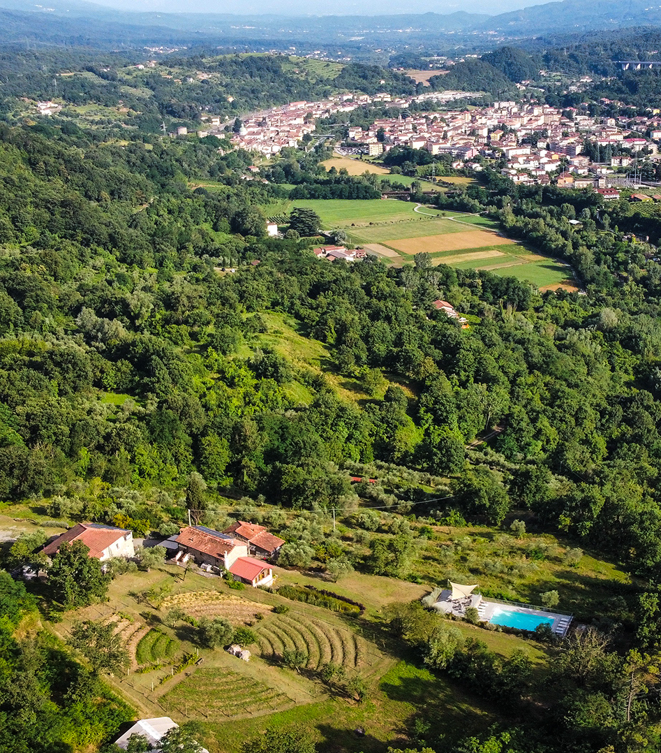 Un luogo immerso tra boschi e uliveti, con silenzio, panorama e ampi spazi.